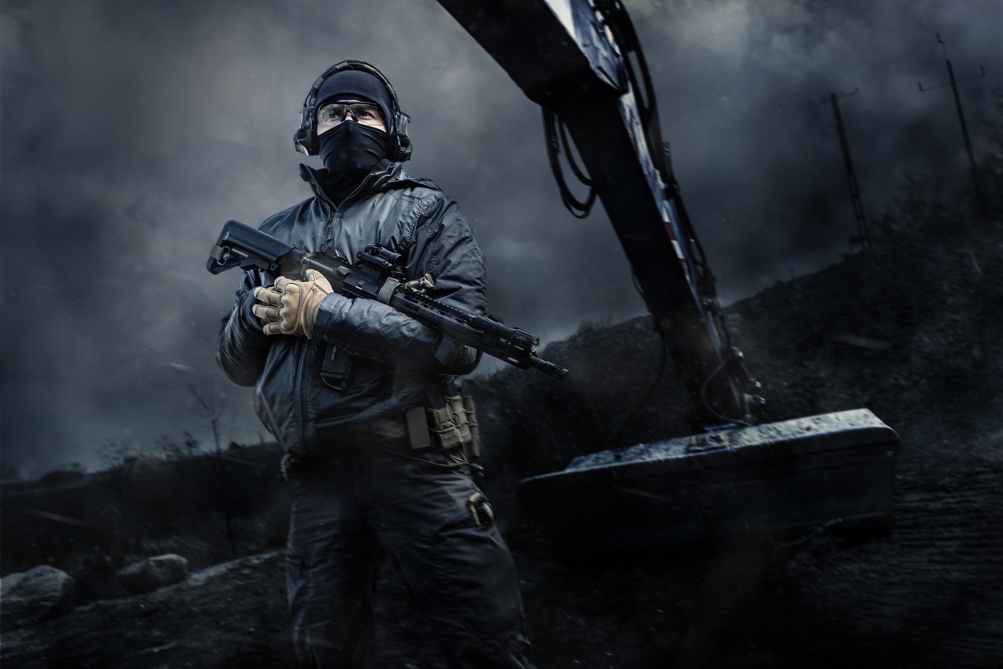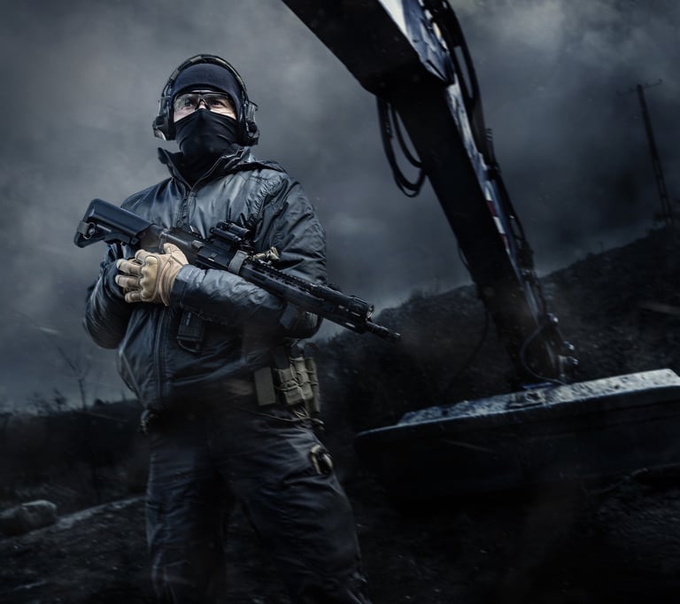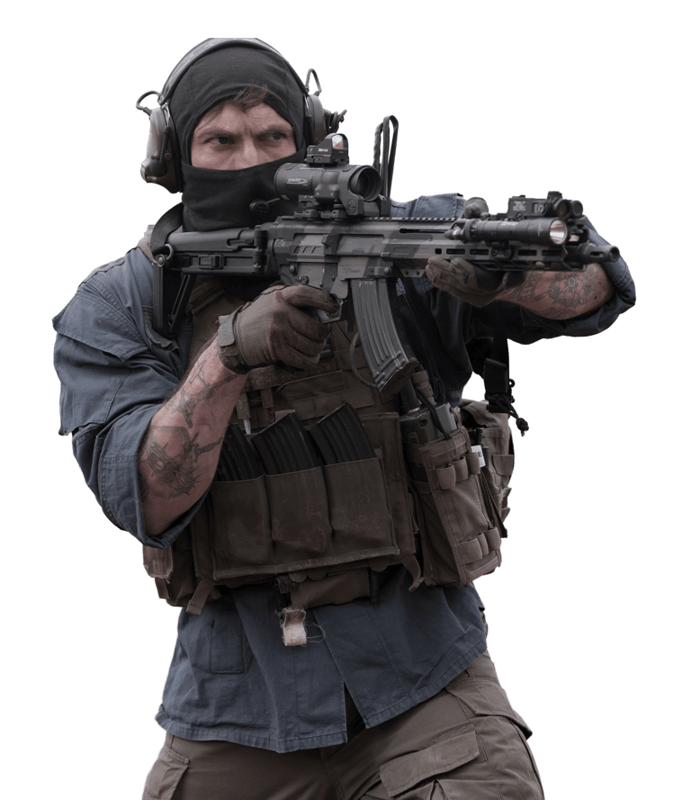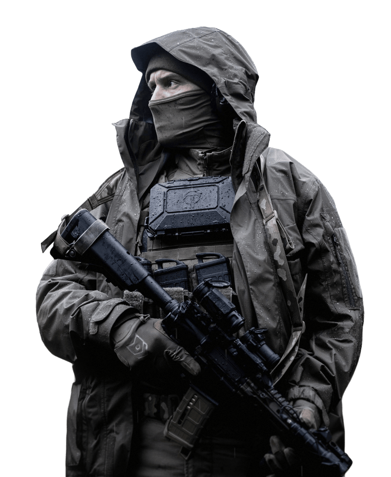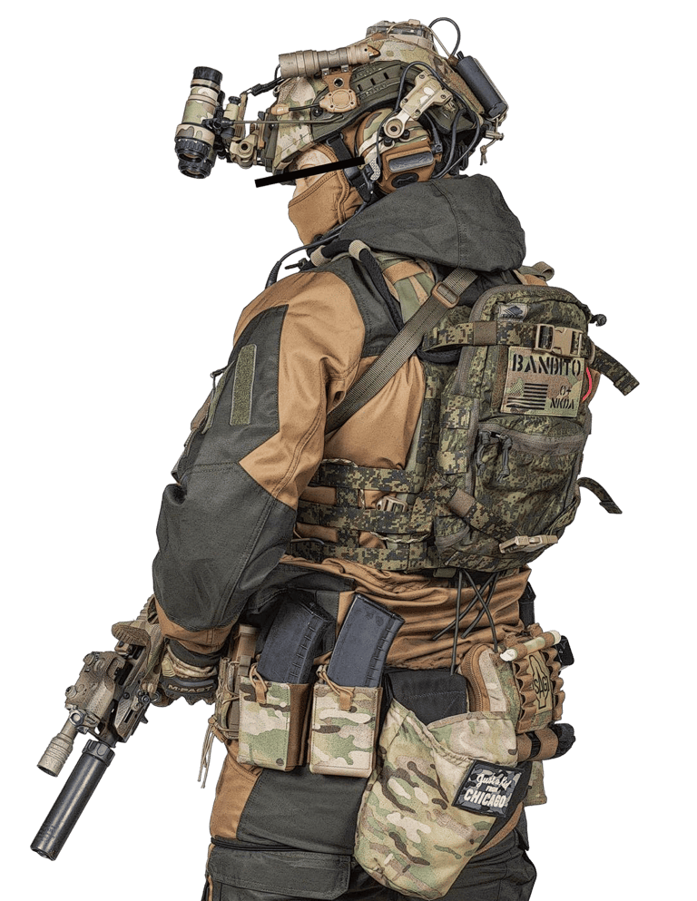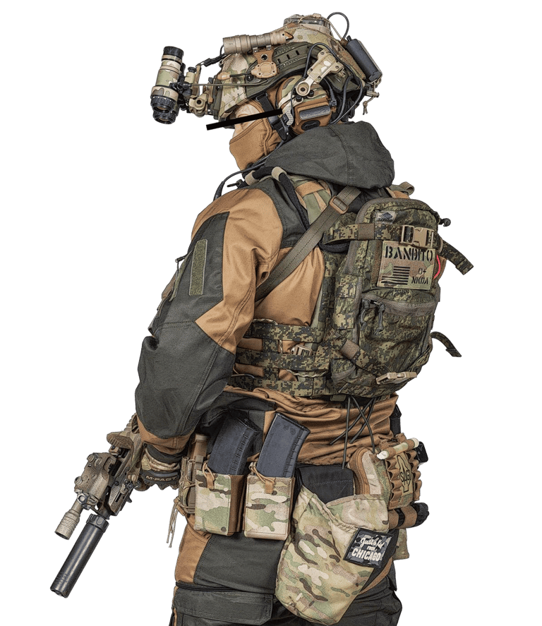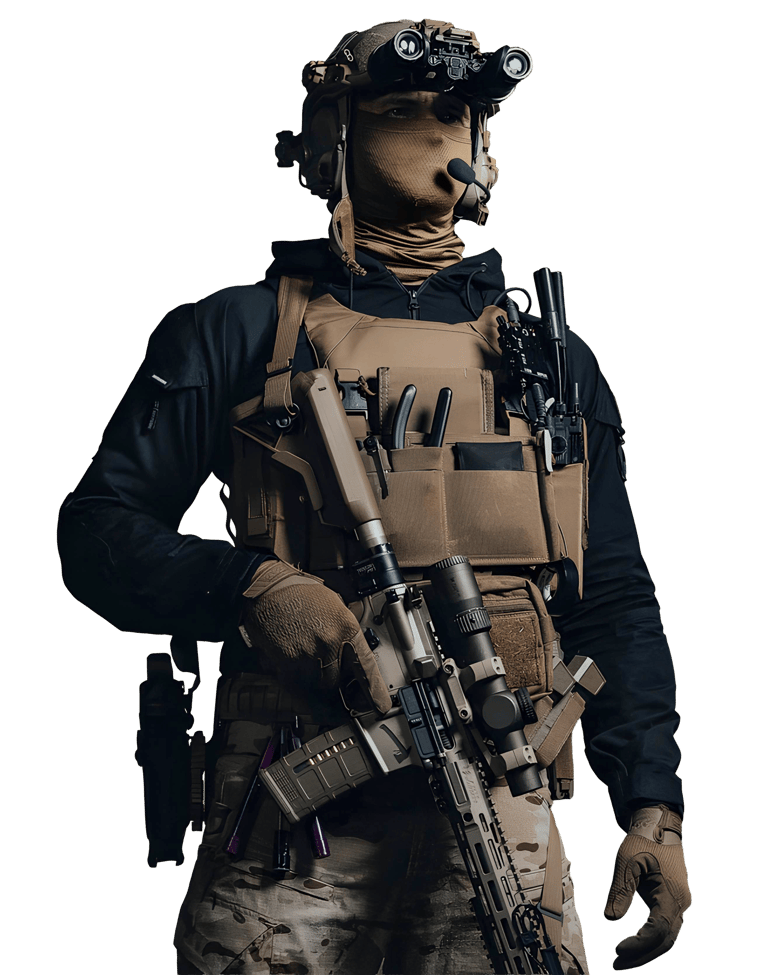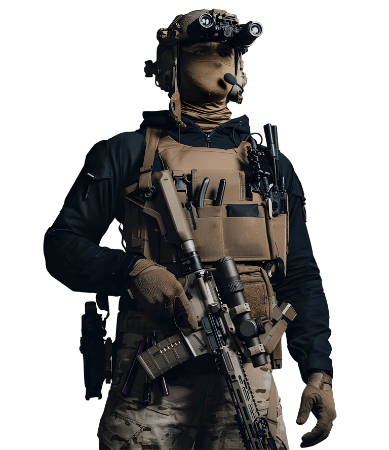Visual de operador profissional, não de soldado regular;